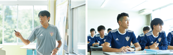 戦術理論・ゲーム分析・栄養学など、サッカーをより深く理解するための授業を実施しています。