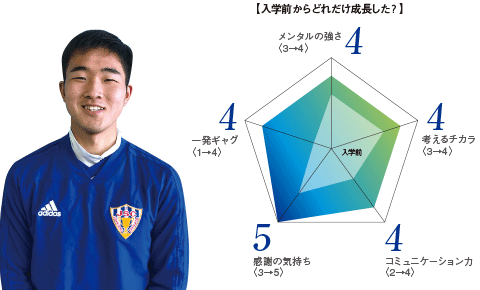 天皇杯では、Jリーグクラブと本気の試合をして、プロのレベルを身をもって経験することが出来ました。プロと対戦してみて、自分で状況を打開できる武器や力を身につけることが、今の自分の課題だと感じました。