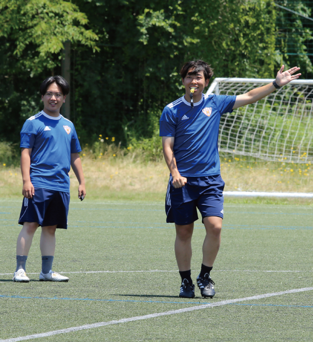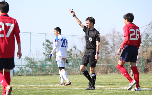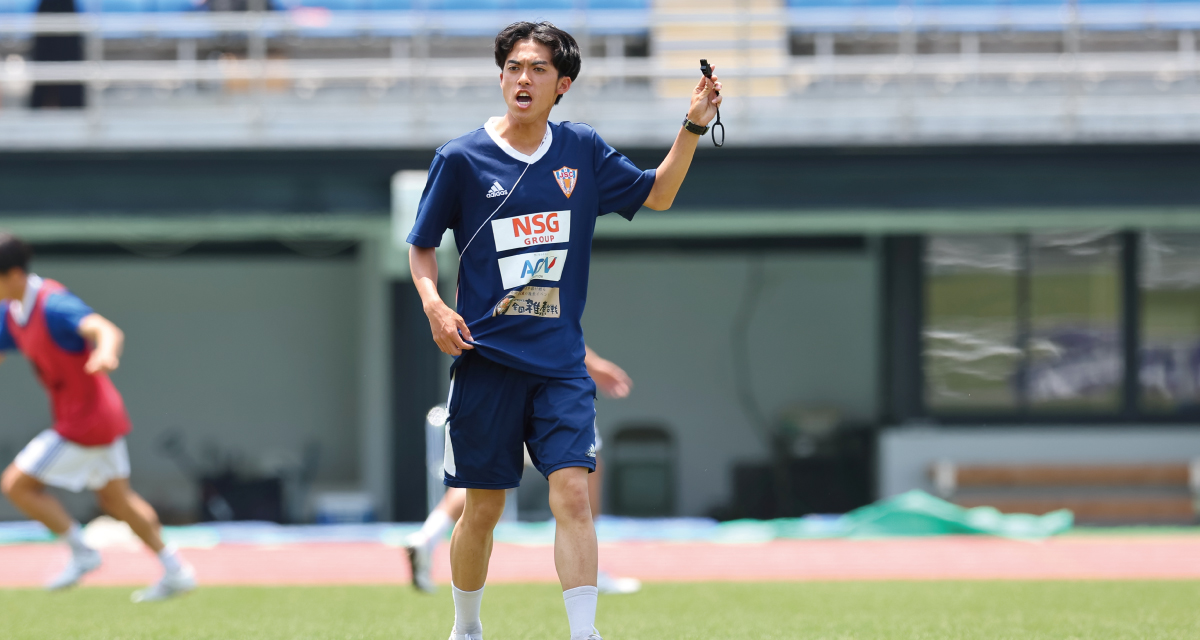 国内でも数少ない「JFA2級審判員養成校」として認定され、JFAの審判インストラクターが指導。レフェリー志望者は、1年次に3級審判員資格を取得後、審判員の実践経験を積み、2年次に2級審判員にチャレンジします。2級審判員の資格取得後も継続して実績を積み、卒業後に1級審判員資格を取得すると、JリーグやWEリーグの担当審判員、JFAと直接契約して活動するプロフェッショナルレフェリー(PR)、国際大会を担当する国際審判員などとして、国内外で活躍できる可能性が広がります。今シーズンも、1級審判員の卒業生が全国各地で活躍しています。