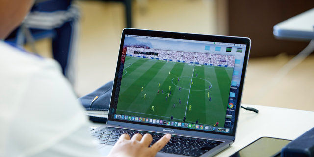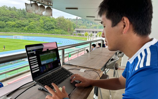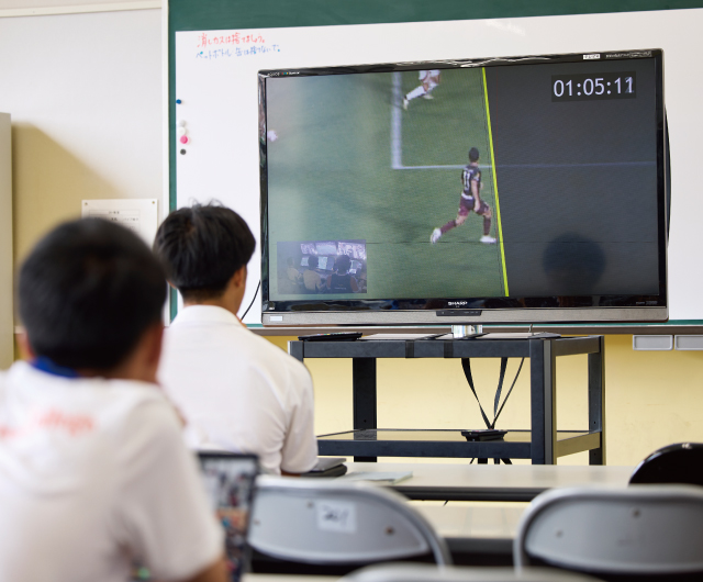 映像編集や試合分析、監督・選手へのフィードバックなどを行うアナリスト。在学中から実際のチームに帯同して現場経験を積み、一般的には求人が出ないJリーグクラブのトップチームへ卒業生を輩出しています。