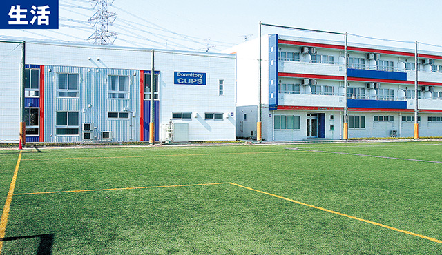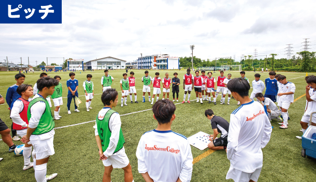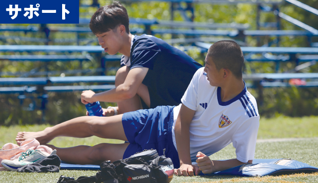 プロの監督・コーチ・トレーナーに加えて、サッカーに関わる職種を目指す学生がチームに帯同。プロクラブ同等のサポート体制です。