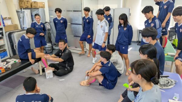 また怪我の度合いによっても巻く量やテープの種類が変わるので、選手とコミュニケーションをとりながらテーピングをすることが大切だと教えていただきました。