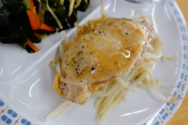 下に敷かれたもやしがシャキシャキとした食感を添え、