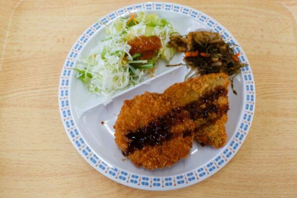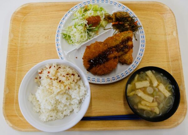 【JSCめし】ガーリックライスの香ばしさが食欲を刺激! アジフライ&メンチカツ