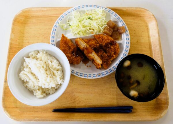 【JSCめし】サクッと軽やか、ソースが絡んでジューシーな味わい チキンカツ定食