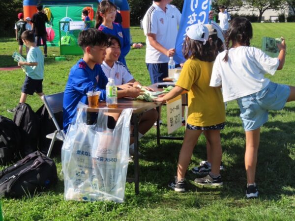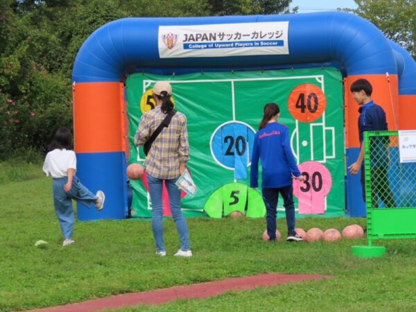 その中でもキックターゲットは人気で、高得点を目指してみなさん頑張っていました!そのほかスピードガンやフットゴルフなどたくさんの人にボールに触れてもらい、サッカーの良さを少しでも知ってもらうことができたと思います。