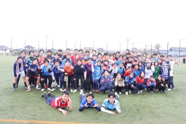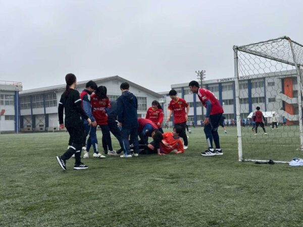 当日は大雨とはなりましたが、そんな事はお構いなしに迫力あるプレーが連発しました!次の日から授業開始日なのはお構いなしのずぶ濡れ具合…皆さんお風呂に確実に入りましょう。先輩後輩仲良くゴールを決めたら全員でハイタッチ!
