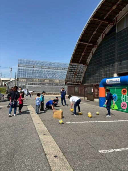 私たちサッカービジネス科学生は5月5日(月)に道の駅朝日みどりの里 春まつりに参加してきました。