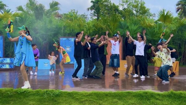 沖縄のビートに合わせて、青空の下で打ち上げられる大量の水を浴びながらびしょ濡れに。最初は遠慮気味だった人も、気づけば全員が笑顔で踊り、会場全体が一体に。
