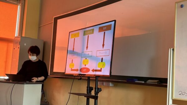 また、栄養学の授業では人それぞれの目的に合わせた献立の作成をしたり、炭水化物・脂質・タンパク質・無機質・ビタミンという体に最も大事な五大栄養素やアスリートに必要なタンパク質・脂質・カロリーのPFCバランスを気をつけて食事をしていくとどのような影響が体に出るのか、を勉強しています!
