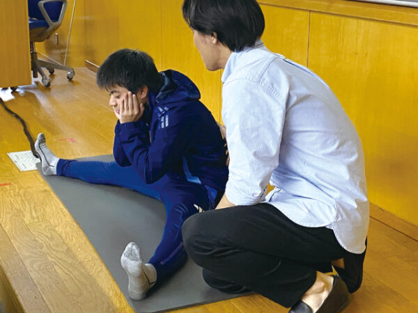 トレーナーとしての実践経験を積むため、社会人リーグに参戦する学内チーム、インターハイ・全国選手権大会に出場経験のある開志学園JSC(JAPANサッカーカレッジ高等部)に、シーズンを通じてトレーナーとして帯同。リーグ戦などの公式戦に向けて、選手のコンディションとパフォーマンスを上げるためのトレーニング、ケガから競技復帰するまでのリハビリ指導などを行います。