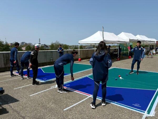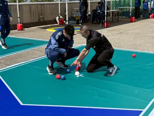 初めて「ボッチャ」というものを知った学生が多く、最初は戸惑っていましたがルール説明をしていただき実際にやってみると楽しく、子供よりも熱中している人もいました。