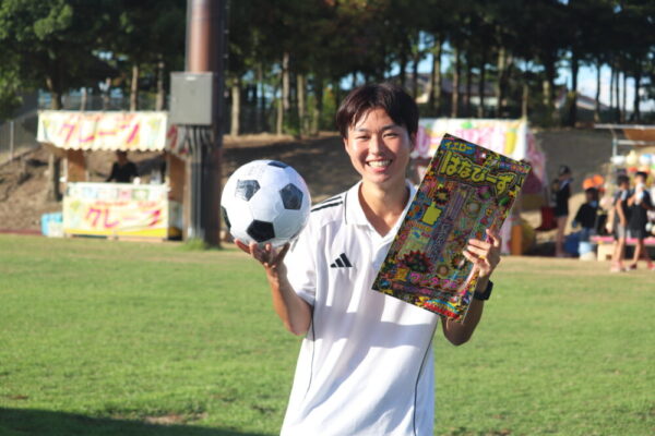 今年は天然芝で「キックターゲット」「サッカーゴルフ」「ドリブルレース」「サッカークイズ」を実施しました!