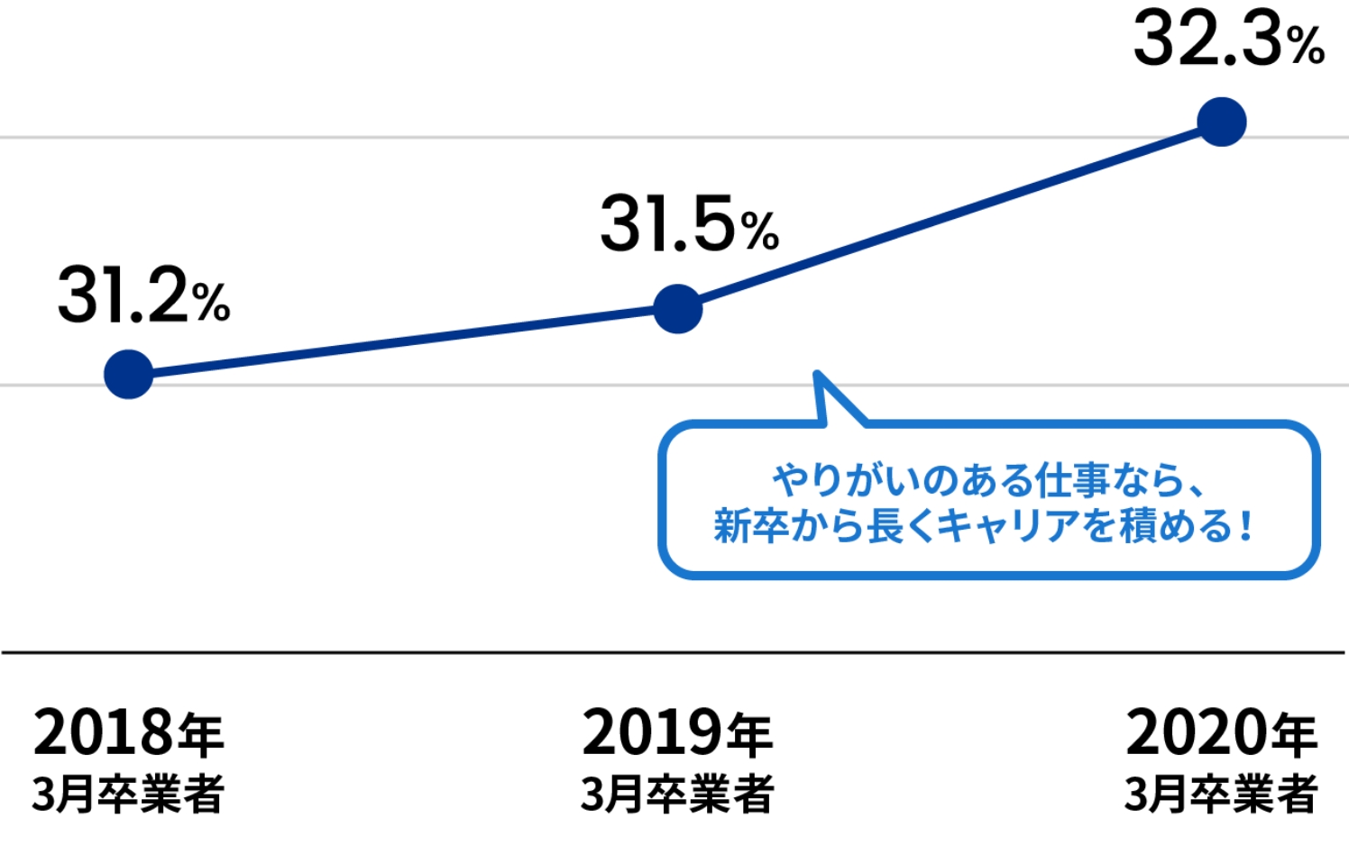 ⼤学を卒業して新卒で就職した⼈の3年以内離職率は32.3%と年々上昇傾向。
