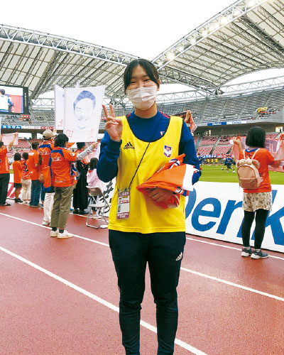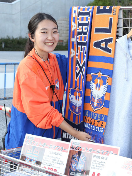 試合当日は、クラブの一員として後援会ブースでの業務を行っています。